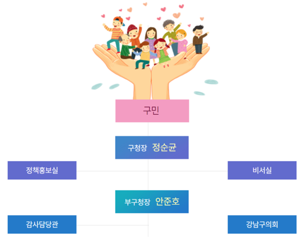 강남구청 조직도의 가장 위에는 강남구민이 먼저 있는 것을 보실 수 있습니다.