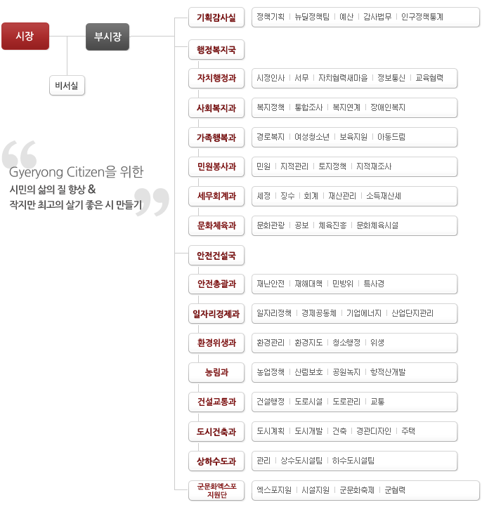 Gyeryoung Citizen을 위한 시민의 삶의 질 향상 작지만 최고의 살기 좋은 시 만들기 시장비서실부시장