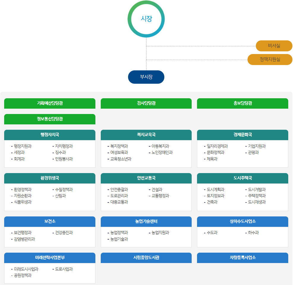 조직도부서별 팩스번호 안내청사안내오시는길(시청,읍면동,직속기관,사업소)