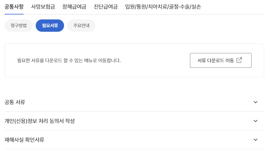 청구서류는 기본적으로 공통 서류와 필요시 제출해야 하는 추가서류가 있습니다.