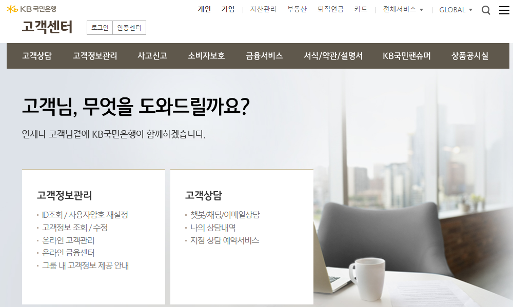 1. 국민은행 고객센터 접속하기