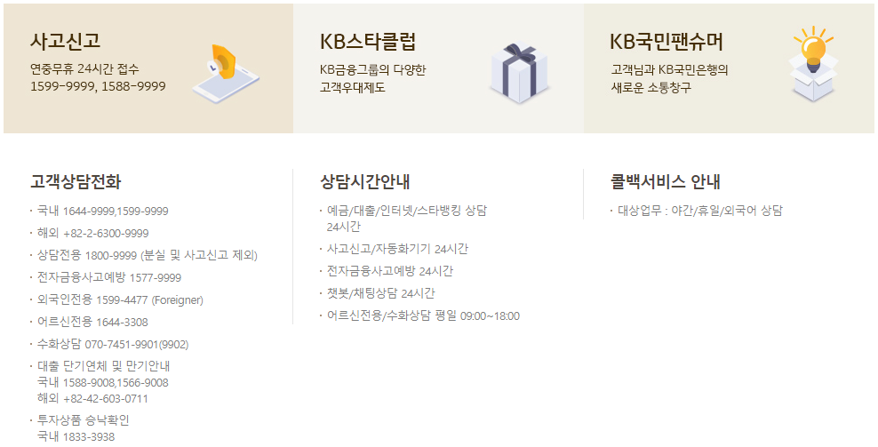 업무에 따른 국민은행 고객센터 전화번호 안내입니다.