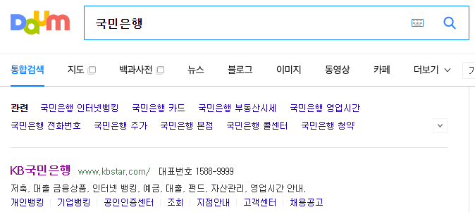 국민은행 홈페이지로 접속하기 위해서는 검색엔진에서 국민은행을 검색해 줍니다. 검색결과 제일 상단에 국민은행 홈페이지가 검색이 됩니다.