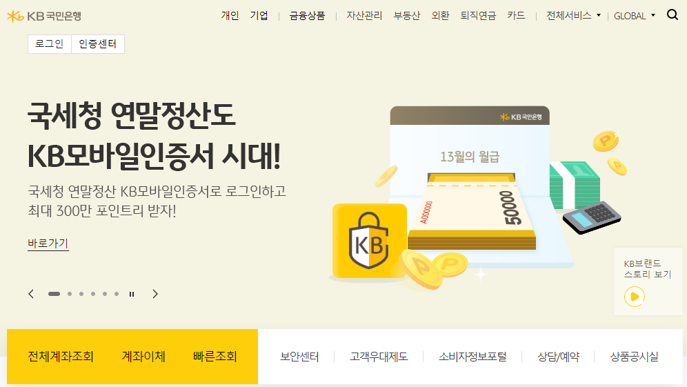 우리나라에는 여러 은행들이 참 많이 있습니다. 대부분의 사람들은 1금융권 은행을 이용하고 계실텐데요. 오늘은 KB국민은행의 홈페이지 이용방법에 대한 소개를 해 드리려고 합니다.