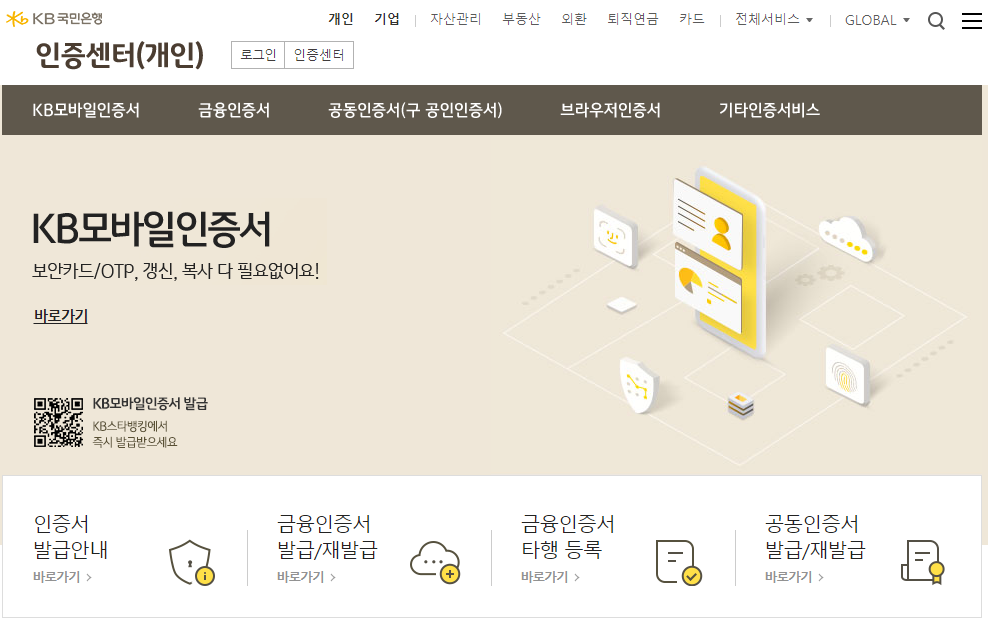 국민은행 뿐만 아니라 각종 은행 홈페이지 또는 어플을 이용하시려면 로그인을 하셔야 합니다. 국민은행은 금융인증서, 공동인증서(구 공인인증서) 스마트폰 인증, 그리고 ID를 통해 로그인 하실 수가 있습니다.