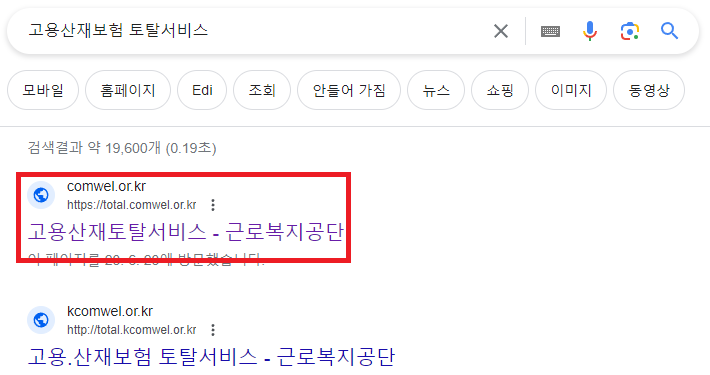 검색 또는 여기를 통해서 고용산재보험 토탈서비스 홈페이지로 간편하게 접속할 수 있습니다.
