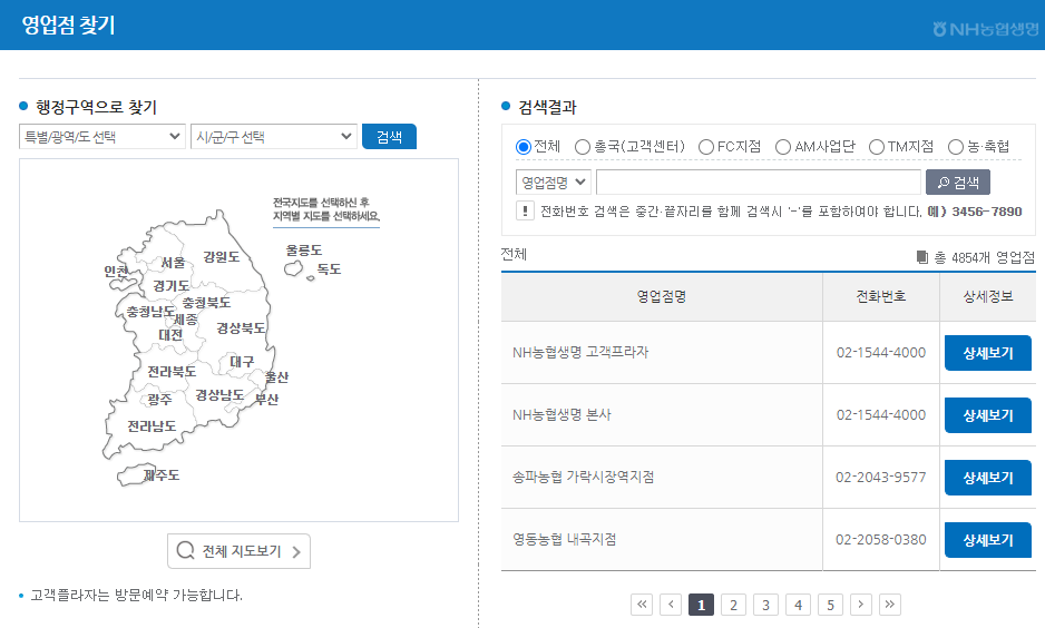 농협생명 고객센터를 이용하여 업무를 다 보지 못한 경우에는 가까운 영업점 방문이 필요할 수도 있습니다. 농협생명 홈페이지에서는 간단한 검색으로 가까운 영업점 위치를 확인할 수 있습니다.