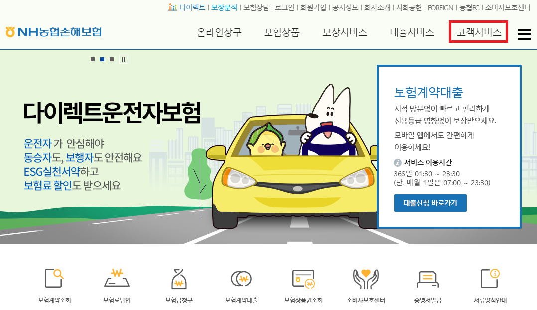 농협손해보험을 이용 중이라면 농협손해보험 홈페이지를 통해서 이용중인 상품에 대한 자세한 안내와 보험금 청구, 신규가입 등과 같은 다양한 업무를 볼 수 있습니다.