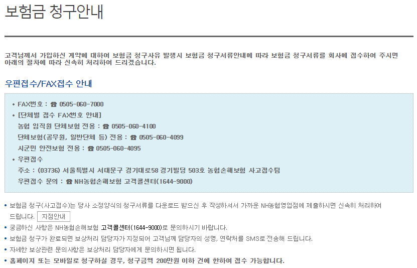 농협손해보험 고객센터 상담원 연결을 대부분 보험금 청구안내와 같이 필요한 궁금증을 해결하기 위한 경우가 대부분입니다. 홈페이지에서는 보험금 청구 방법과 절차에 대해서 자세하게 소개를 하고 있습니다.