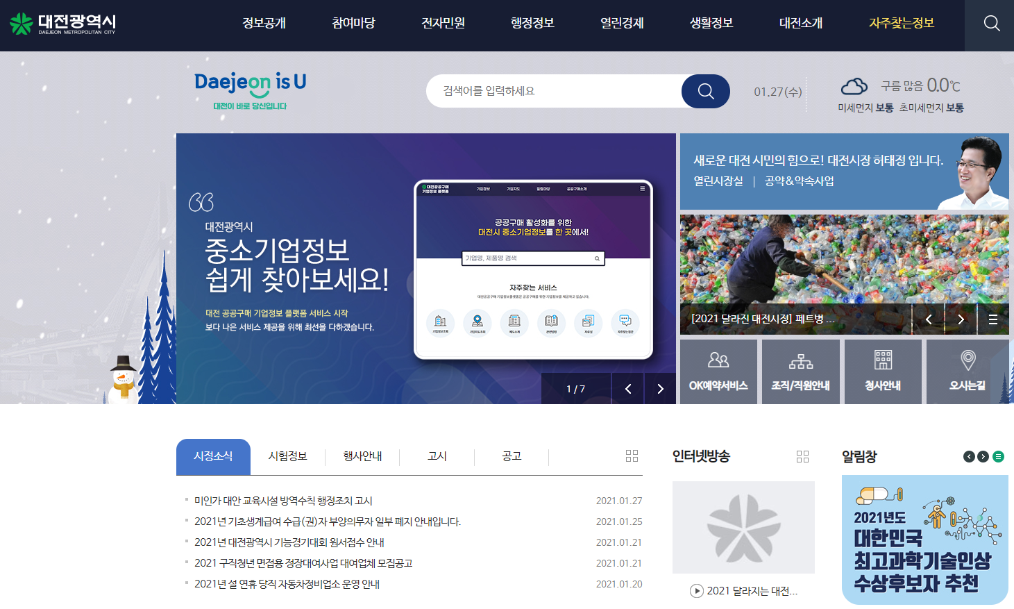 대전소식모아보기(자치구)공지사항보도자료문화행사입법예고타기관 채용정보고시공고입찰정보