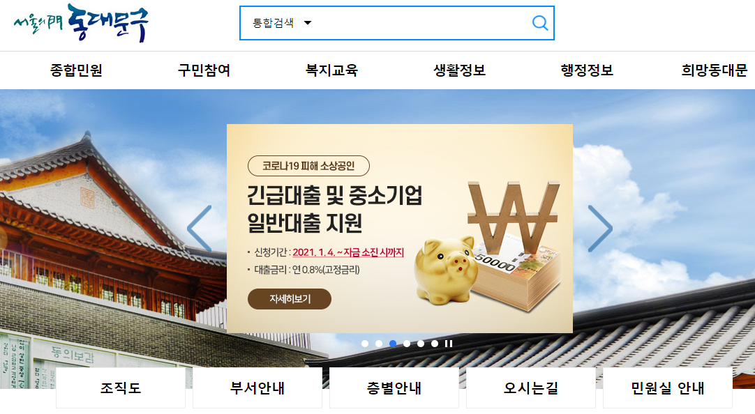 동대문구청을 자세히 살펴보기 위해서는 동대문구청 홈페이지로 접속하시는 것이 가장 빠른 방법입니다. 포털사이트에서 동대문구청을 검색하시면 간편하게 접속을 하실 수가 있습니다.
