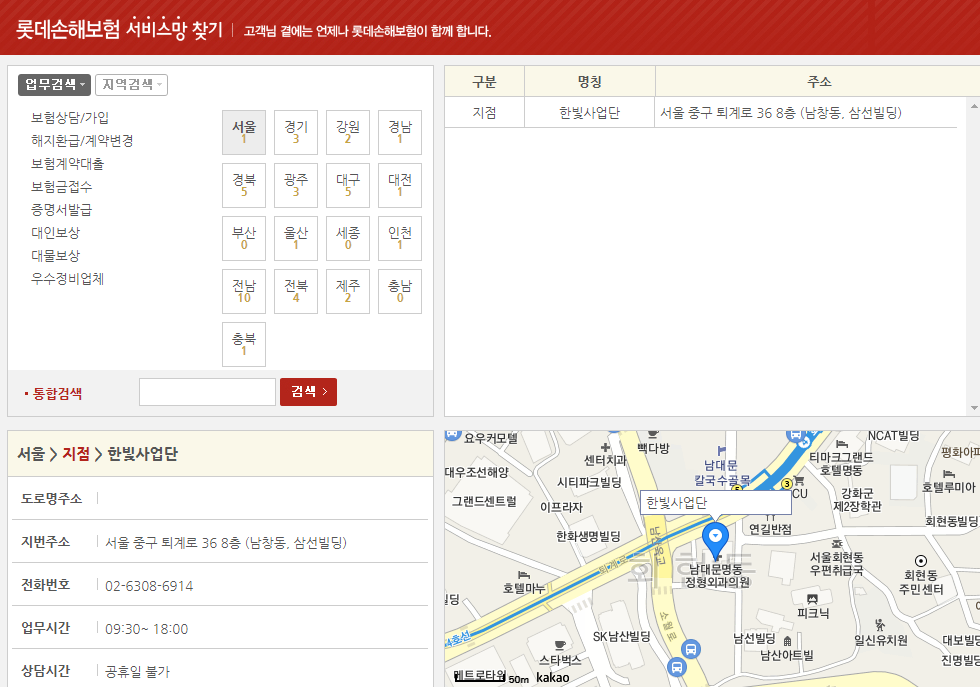 3. 롯데손해보험 지점 찾기