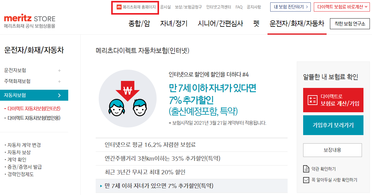 1. 메리츠화재 공식 홈페이지 접속