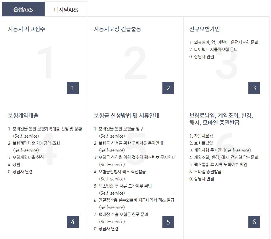 - 다이렉트 자동차보험 : 1522-1133