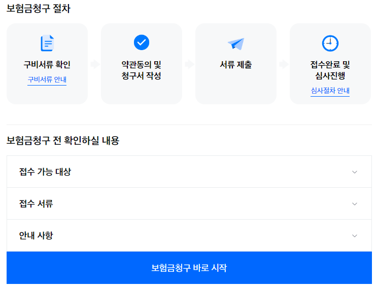 - 접수 대상으로는 사고보험금 모든 급부이며 일부 대상은 제외될 수 있습니다.