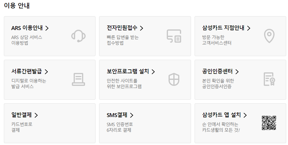 - 홈페이지 이용 : 삼성카드 홈페이지 이용 문의