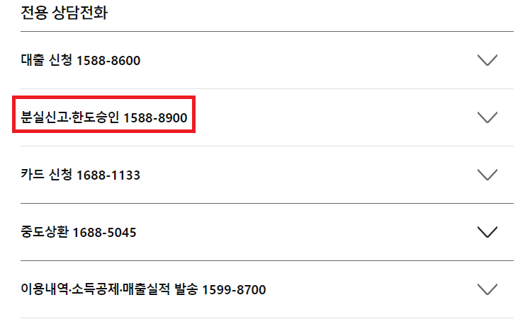 - 분실신고 : 1588-8900