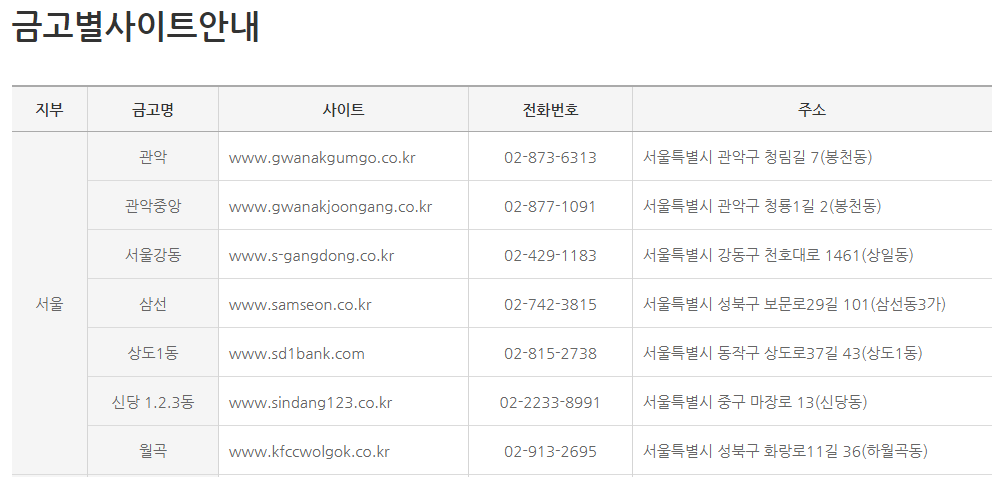 새마을금고는 금고별 사이트가 다르기 때문에 지역의 사이트를 이용하기 위해서는 아래에서 선택을 하여 접속을 하시는 방법이 가장 빠른 방법입니다.