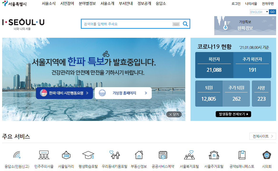 서울시청을 자세히 살펴보기 위해서는 서울시청 홈페이지로 접속하시는 것이 가장 빠른 방법입니다. 포털사이트에서 서울시청을 검색하시면 간편하게 접속을 하실 수가 있습니다.