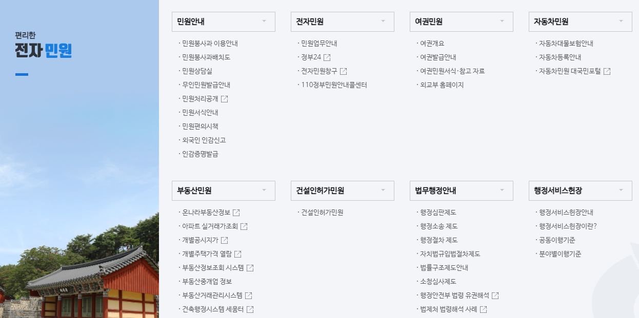 원하시는 민원을 클릭하시면 상세한 정보를 확인 하실 수 있습니다.