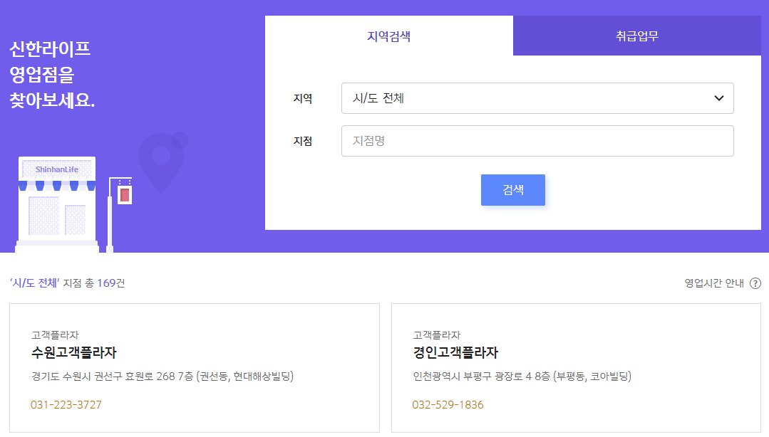 고객센터 상담사를 통한 상담으로도 해결하지 못하는 업무가 있을 수 있습니다. 이때에는 가까운 신한라이프 영업점을 방문해야 합니다. 방문하기 전에 가까운 영업점 위치를 검색하고 방문을 하면 됩니다.