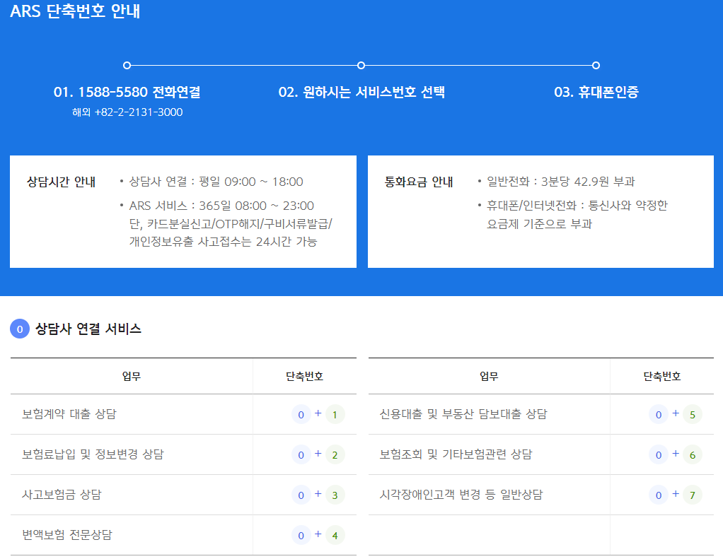 - 0+6 : 보험조회 및 기타 보험 관련 상담