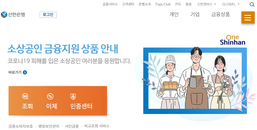 신한은행 금융인증서에 대해 알아보려면 가장 먼저 신한은행 홈페이지에 접속해야 합니다. 검색엔진에서 신한은행을 검색하시면 간편하게 접속이 됩니다. 핸드폰 어플로도 접속을 하실 수가 있습니다.