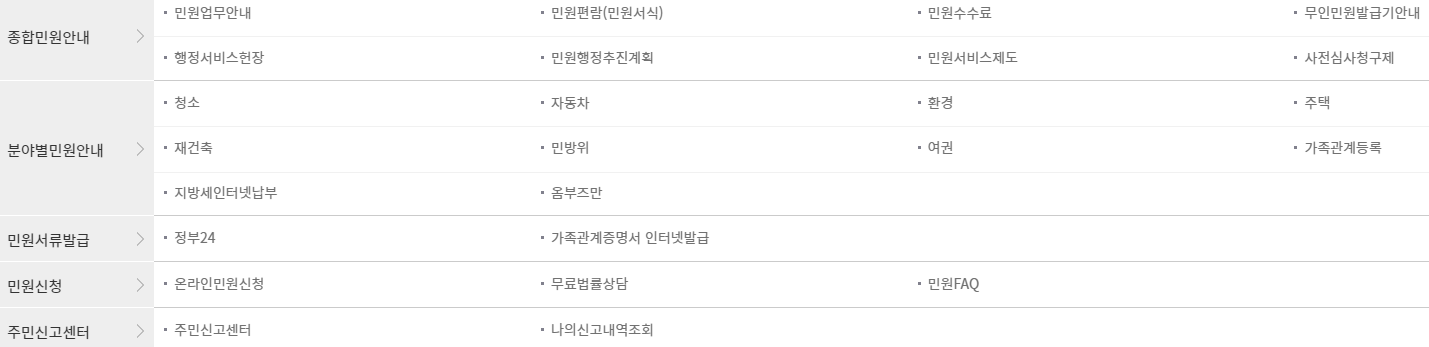 청소자동차환경주택재건축민방위여권가족관계등록지방세인터넷납부옴부즈만