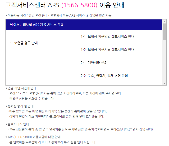 2. 에이스손해보험 고객센터 이용