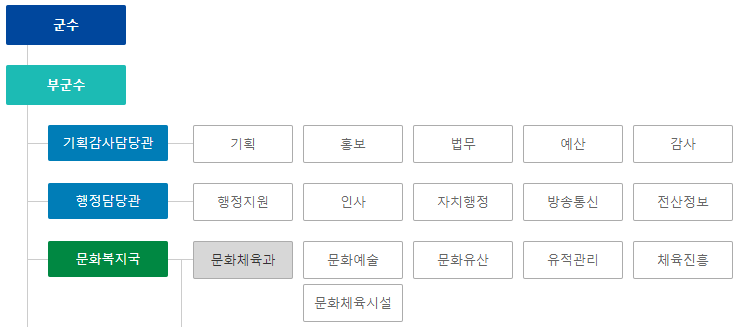 연천군청은 군수 아래에 부군수가 있으며 그 아래의 조직으로는 문화복지국, 경제농정국, 안전도시국 등의 부서가 있습니다.