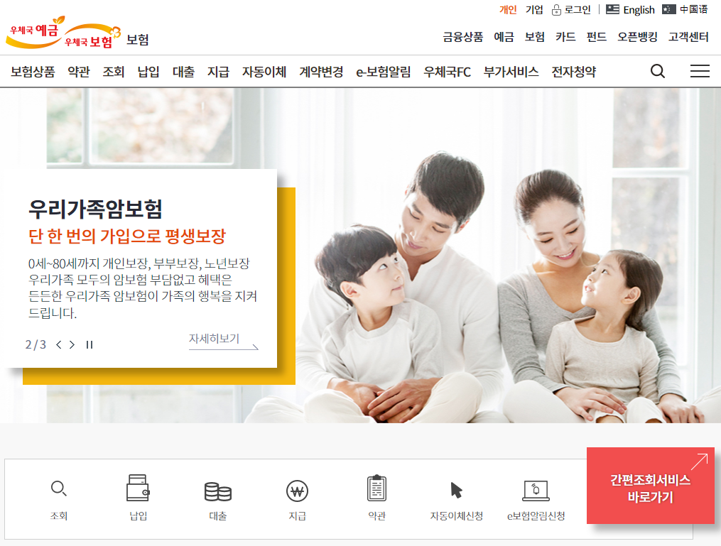 예상치 못한 일이 발생하였을 경우에는 평소에 들어두었던 보험이 많은 도움이 됩니다. 우리나라에는 여러 보험사들이 있지만 국가에서 지급을 보증하는 우체국보험을 이용하는 분들도 많이 계십니다. 우체국보험 홈페이지를 통해 다양한 서비스를 간편하게 볼 수 있는 방법을 소개합니다.