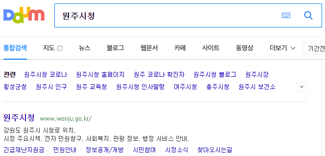 가장 먼저 원주시청을 자세히 살펴보기 위해서는 원주시청 홈페이지로 접속하시는 것이 가장 빠른 방법입니다. 검색엔진에서 “원주시청”을 검색하시면 간편하게 접속을 하실 수가 있습니다.