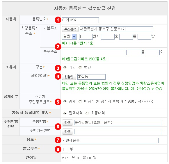 3. 자동차의 소유자 구분은 회원유형에 따라 자동으로 선택됩니다.