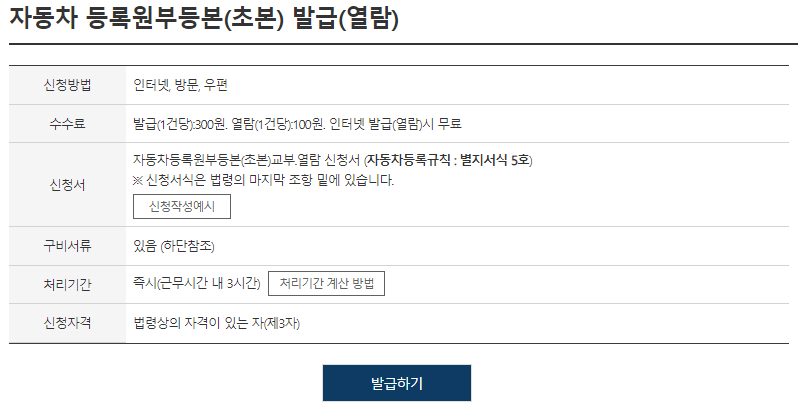 발급하기를 누르면 자동차등록원부등본을 발급하실 수 있습니다.