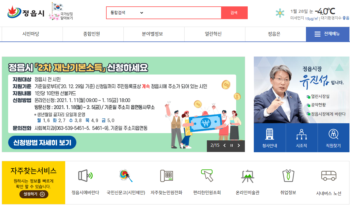 정읍시청 홈페이지에 대해 간단히 살펴보았습니다. 시청 업무를 보시기 전에 미리 확인하시고 방문하시면 아주 많은 도움이 될 것입니다.
