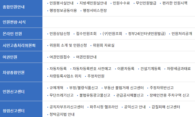민원 생활민원 등 종합 행정서비스