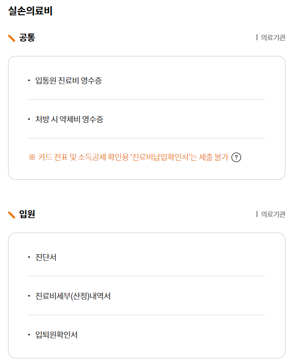 | 실손의료비 공통 | 입통원 진료비 영수증, 처방 시 약제비 영수증 |