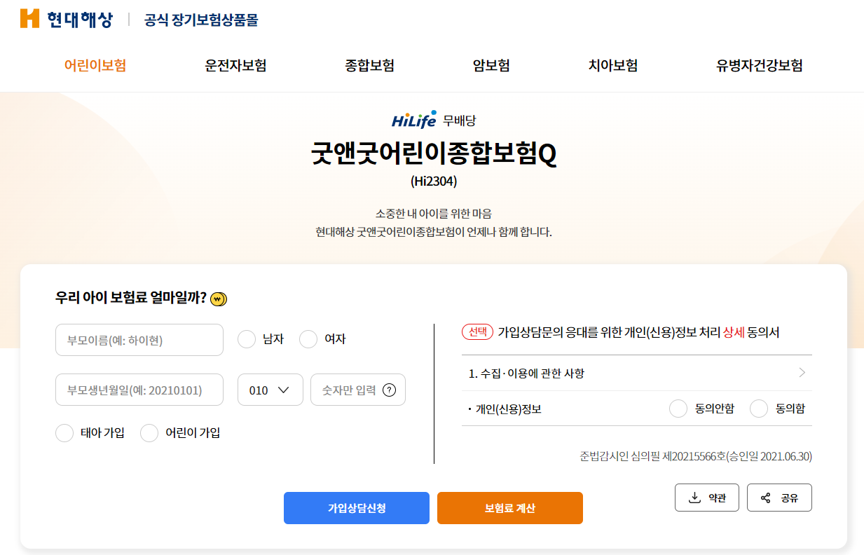 해당 사이트를 선택하면 현대해상에서 판매하는 다양한 보험상품 관련 홈페이지로 이동을 하게 됩니다. 어린이보험, 운전자보험, 종합보험, 암보험, 치아보험 등을 조회할 수 있으며, 간편 가입이 가능합니다.