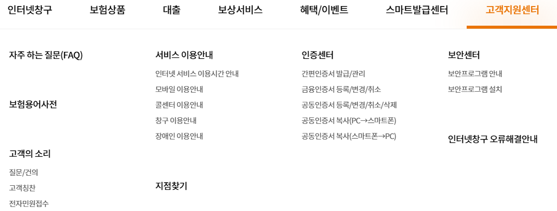 현대해상을 이용 중인 고객이라면 고객지원센터에 대해 알아두는 것도 좋습니다. 고객지원센터에서는 자주 하는 질문, 보험용어사전, 서비스이용안내, 인증센터, 보안센터, 인터넷창구 오류채결안내 등이 있으며 지점 찾기를 통해서 가까운 지점을 찾을 수도 있습니다.