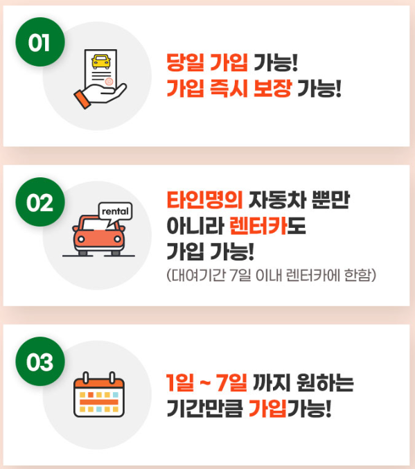 중요한 것은 당일 가입이 불가능하기 때문에 최소 하루 전 미리 가입을 해야 하며, 보험 기간 중 1일부터 최대 30일까지 선택하여 가입이 가능합니다.
