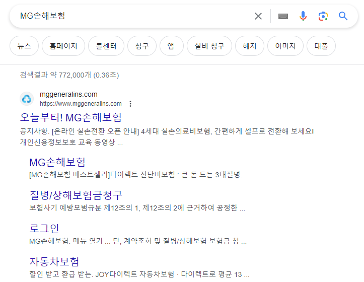 MG손해보험 홈페이지는 포털사이트에서 검색을 하면 간단하게 접속 할 수 있습니다. 번거로움을 조금이나마 줄이려면 여기를 통해서 바로 접속을 할 수도 있습니다.