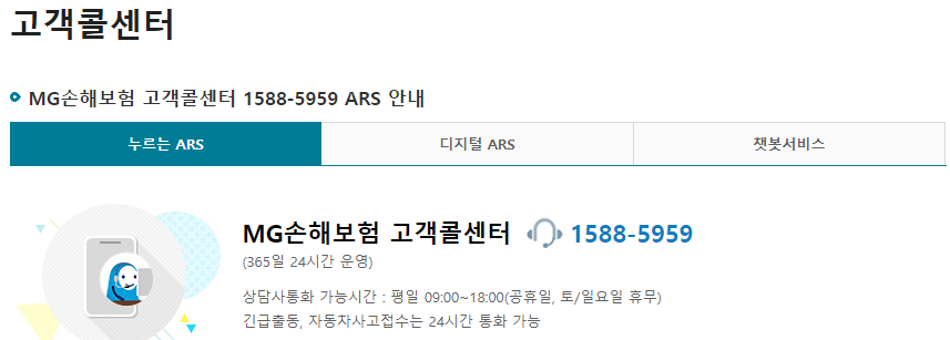1. MG손해보험 콜센터 1588-5959로 연락합니다.