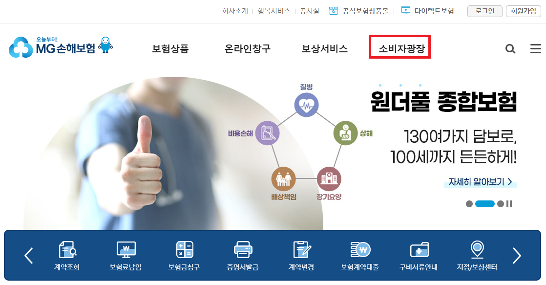 1. MG손해보험 홈페이지 접속